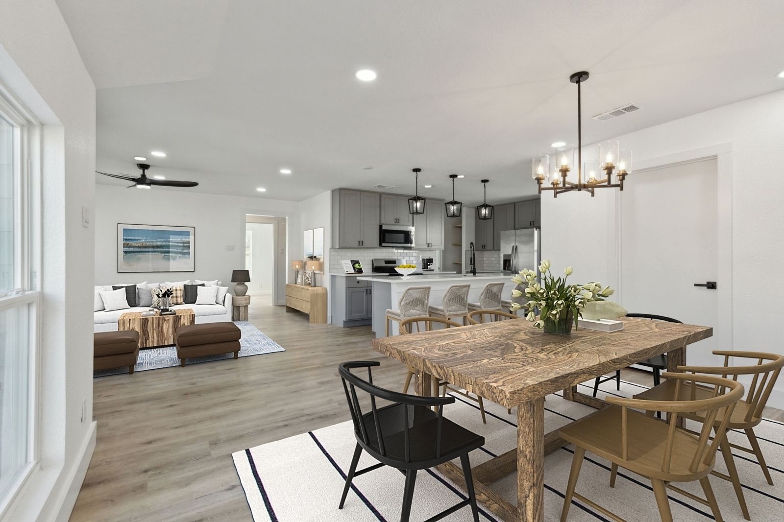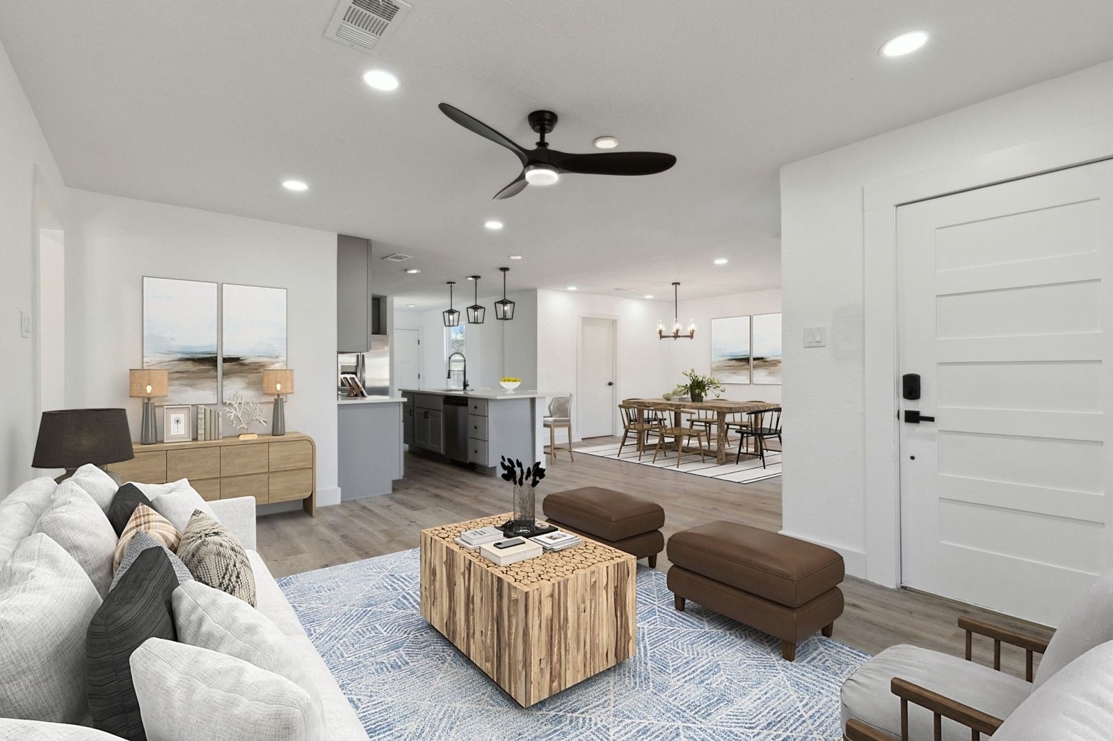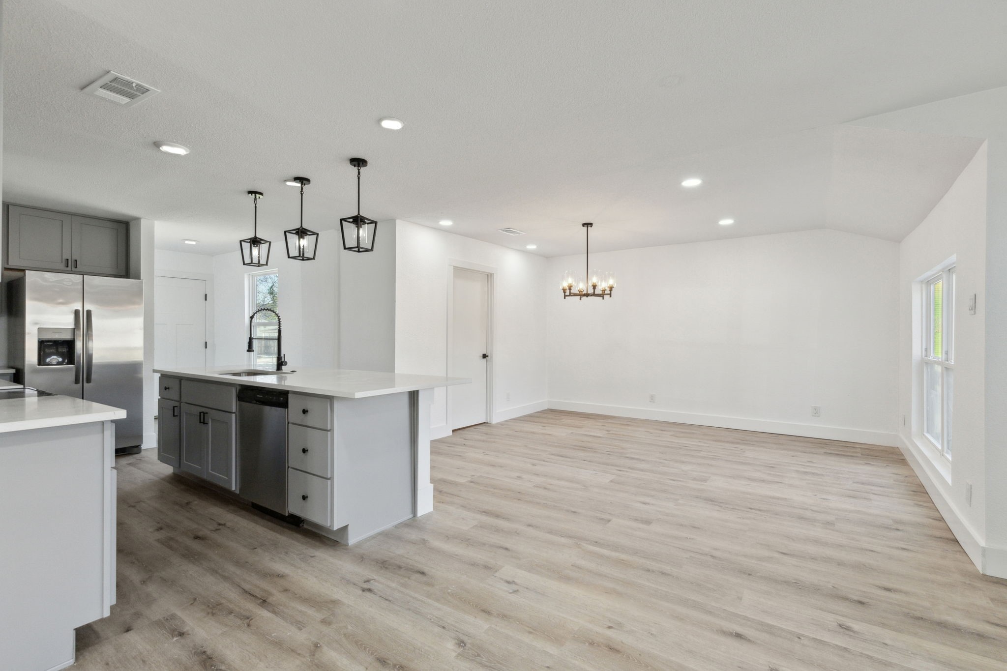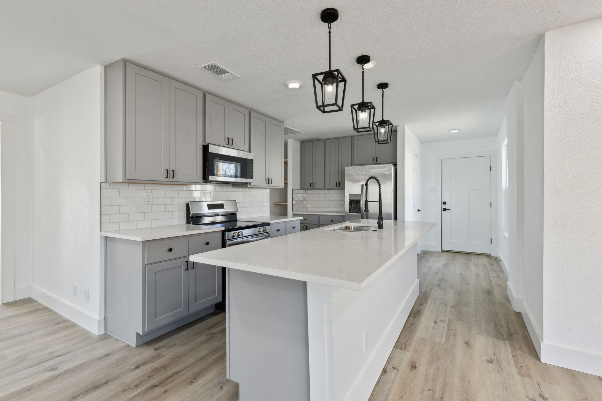This thoughtfully updated home is a perfect addition to your real estate portfolio or for a first-time homebuyer. Seamless open-concept design, connecting the kitchen, living, and dining areas for modern living. The kitchen features sleek quartz countertops, a spacious island with ample storage, and stainless steel Frigidaire appliances, including a refrigerator, microwave, dishwasher, and ceramic top electric stove.