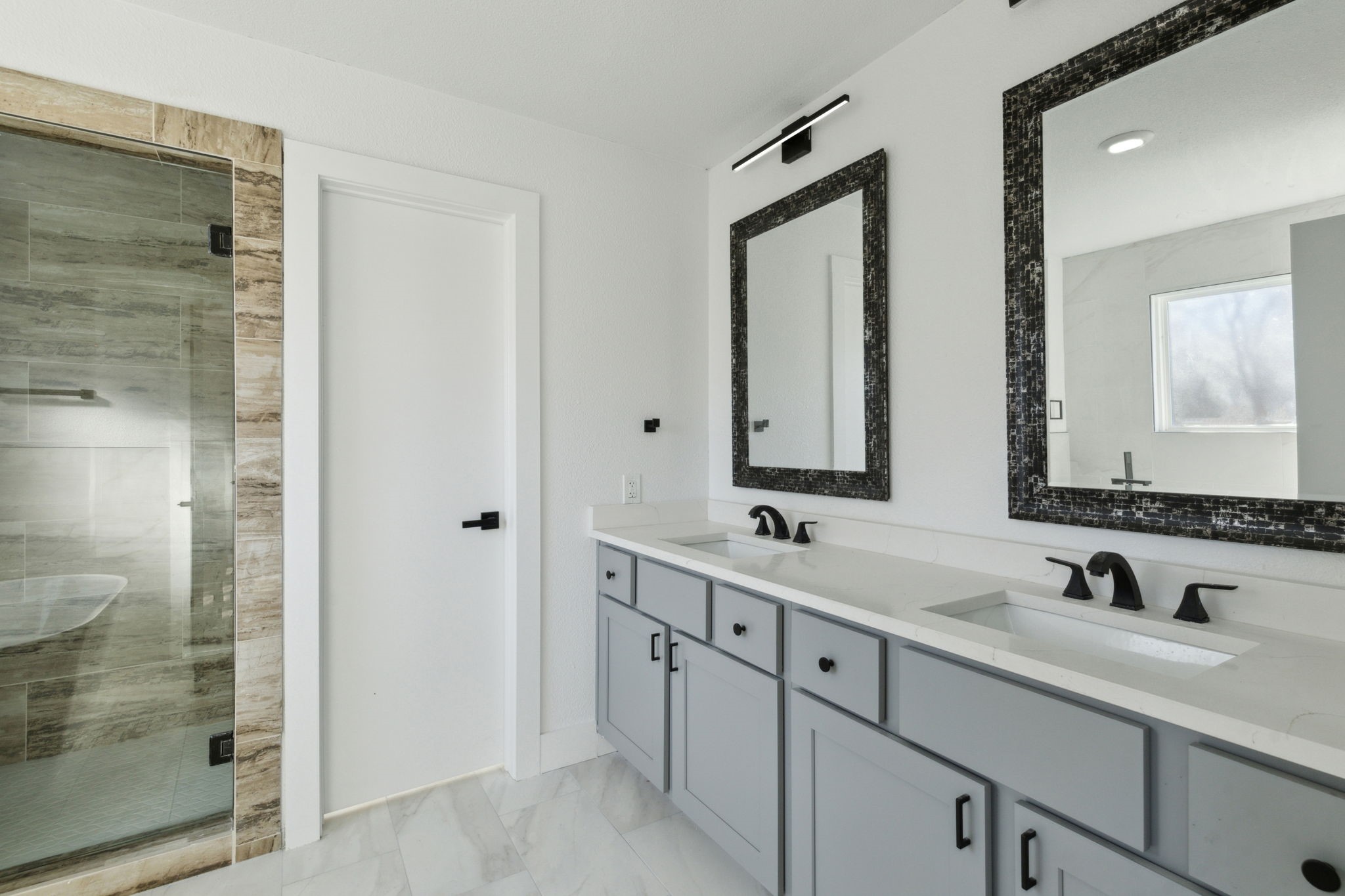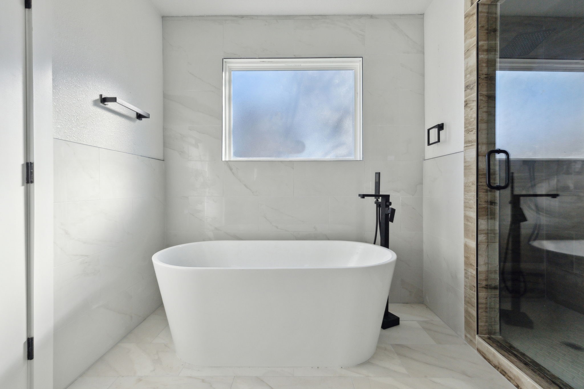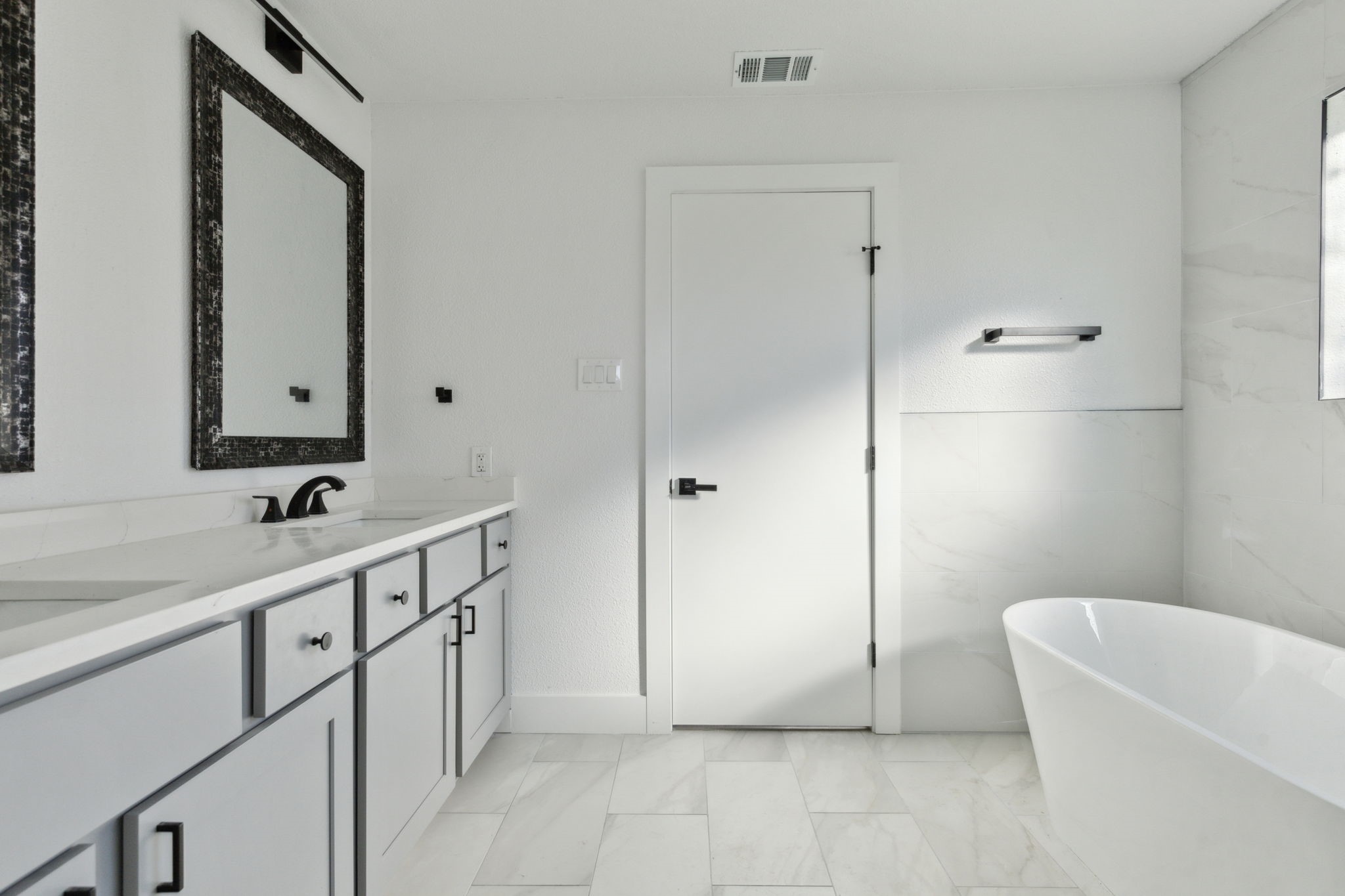 Retreat to the elegant primary suite, complete with a luxurious bathroom showcasing a freestanding soaking tub, double vanities, and a large walk-in closet. The oversized lot boasts a generous backyard, perfect for outdoor living, while the freshly landscaped front yard creates a warm and inviting welcome.