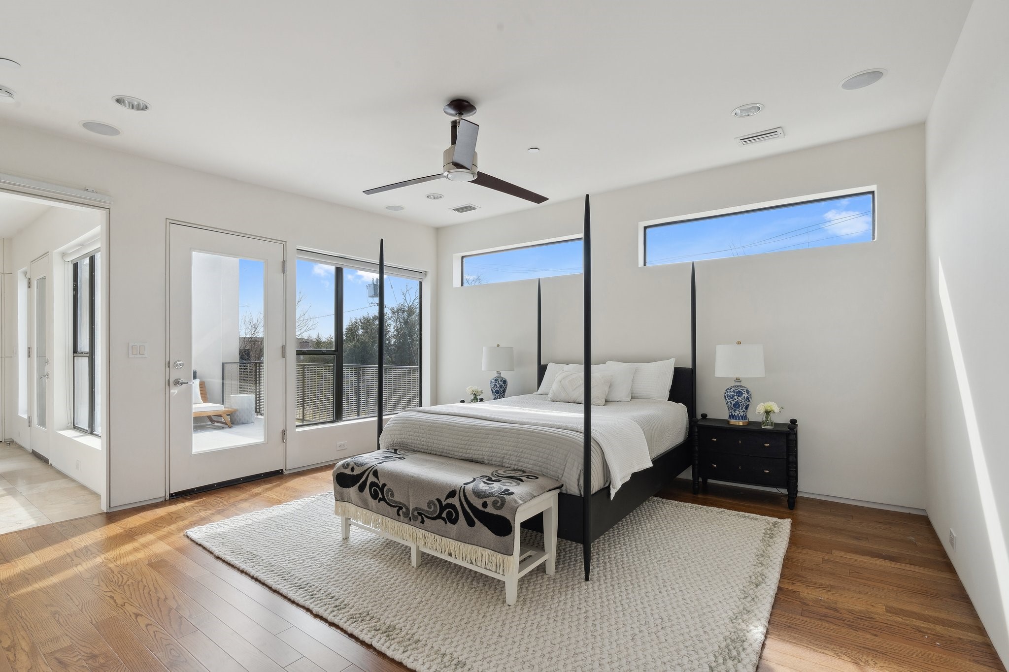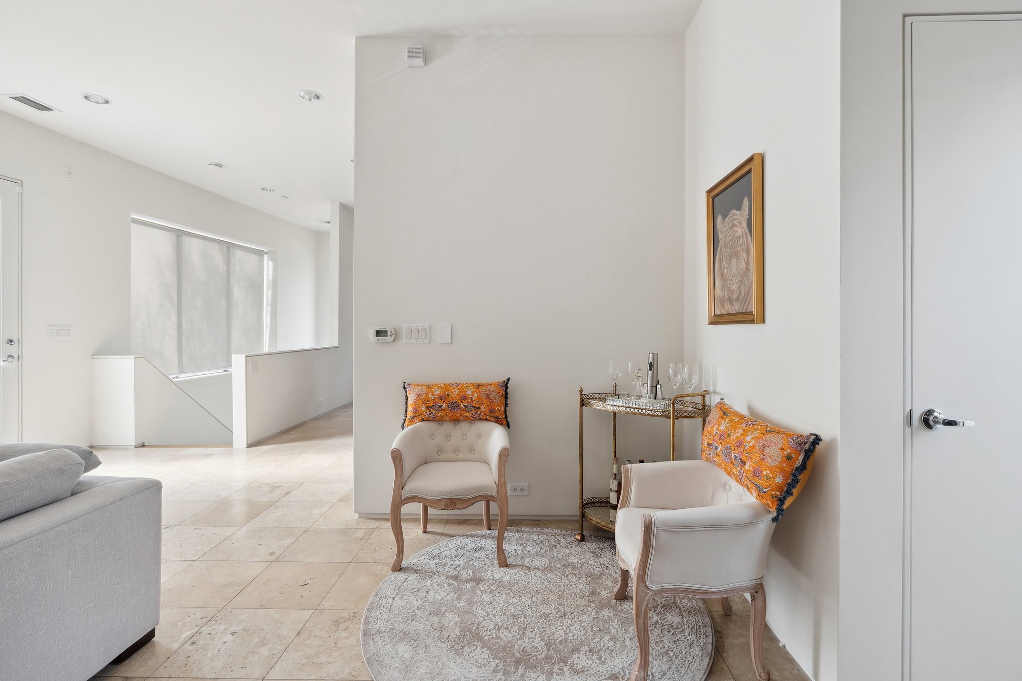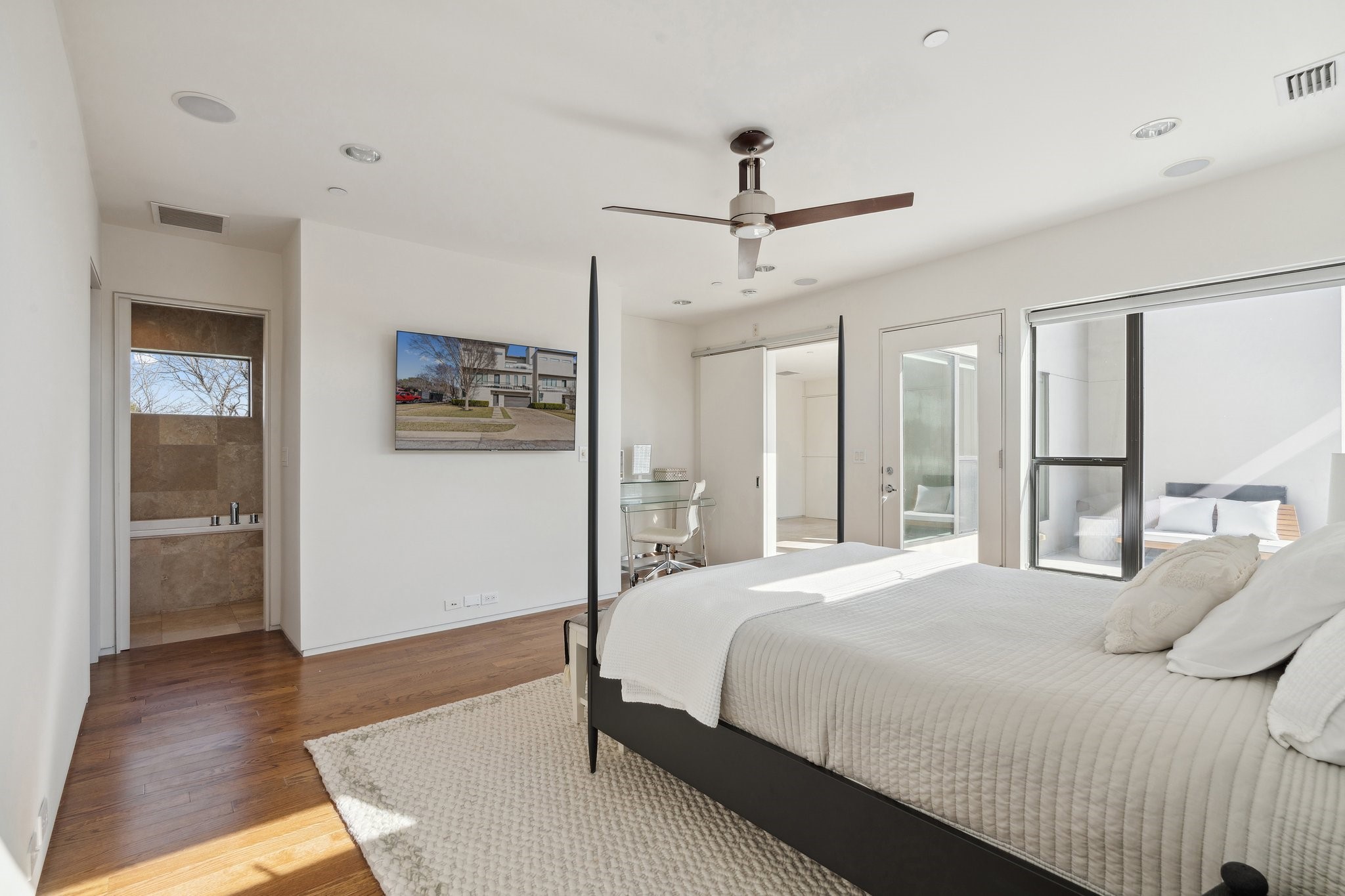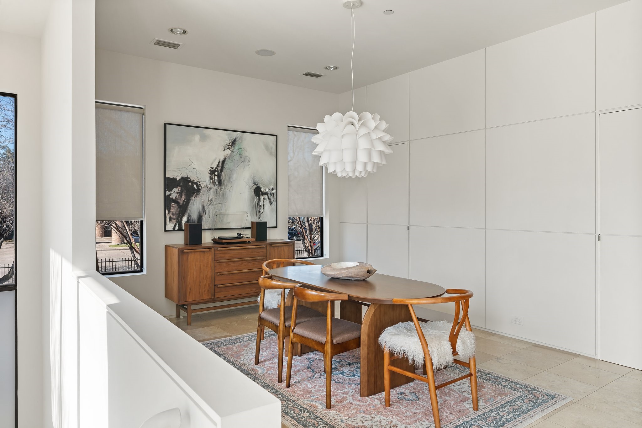 Contemporary light filled end-unit townhouse by Alan Kagan of Dwellings, ideally located near Knox-Henderson with quick access to 75. Surrounded by mature trees, this home offers beautiful treetop views, great curb appeal, and excellent privacy. Oversized windows bring in abundant natural light, highlighting modern finishes, high ceilings, and unique hidden doors leading to bathrooms and storage spaces. The open second level features a sleek kitchen, gas range, stainless appliances, and a cozy gas fireplace that sets the perfect vibe for everyday living and entertaining. Upstairs includes a flexible loft and a spacious primary suite with rooftop patio, walk-in closet, dual sinks, walk-in shower, and soaking tub. Freshly painted and move-in ready. Washer, dryer, and refrigerator included. HOA covers water and dues are paid by the landlord. Prime location near Downtown, Uptown, and Knox.