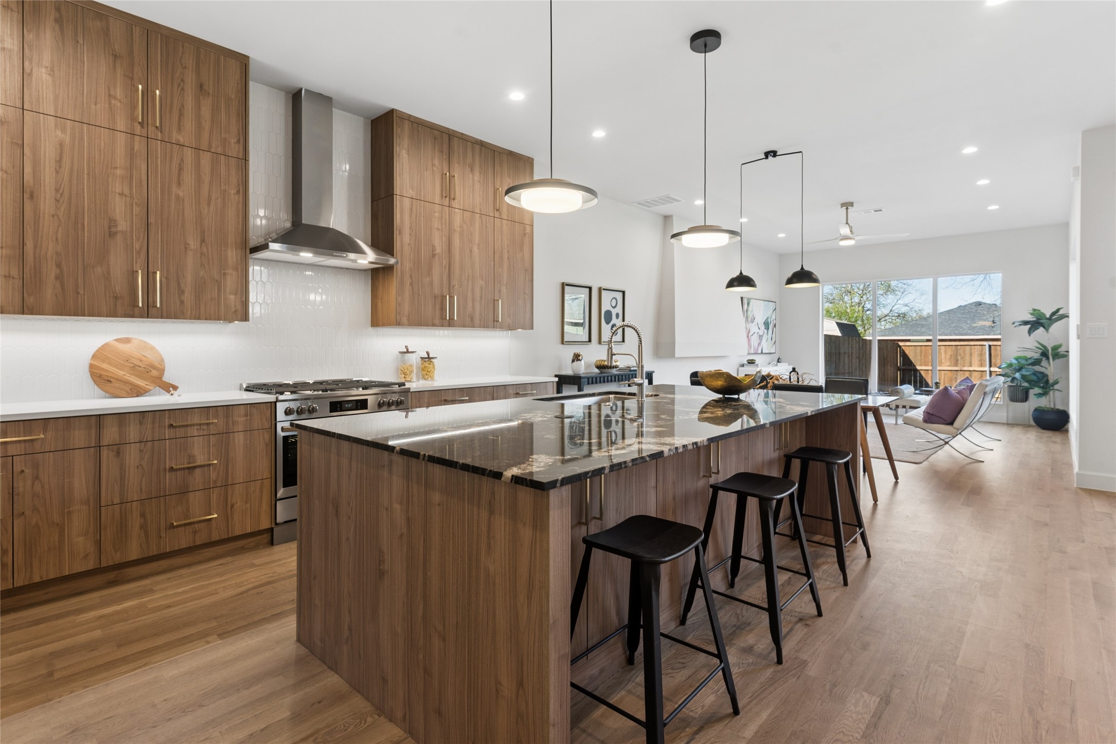 Stunning New Construction Modern Home in Prime Dallas Location. Welcome to this beautifully designed, newly constructed modern single-family attached home offering a perfect blend of contemporary luxury, thoughtful functionality, and an unbeatable location. Situated near Inwood and Lovers Lane, and just minutes from premier restaurants, shopping, and the Dallas North Tollway, this 3-bedroom, 2.5-bath residence puts you in the heart of convenience and style. From the moment you step inside, you'll notice the attention to detail and high-end finishes that define this home. Solid white oak flooring flows seamlessly throughout, adding warmth and sophistication to the clean, modern aesthetic. The open-concept kitchen is a chef's dream, featuring custom European-style cabinetry, sleek quartz countertops, and premium stainless steel appliances--including a built-in microwave, wine refrigerator, and a gas stove. A built-in trash pullout system and thoughtfully integrated storage elevate both form and function. All bathrooms exude modern elegance with floating vanities, designer tile, and contemporary wall-mounted commodes, creating a spa-like experience in your own home. Upstairs, the spacious bedrooms are light-filled and offer ample storage. The primary suite is a private retreat with a beautifully appointed en-suite bath and generous closet space. Additional highlights include energy-efficient systems, clean architectural lines, and a layout ideal for both entertaining and everyday living. Don't miss this opportunity to own a modern masterpiece in one of Dallas' most desirable locations.