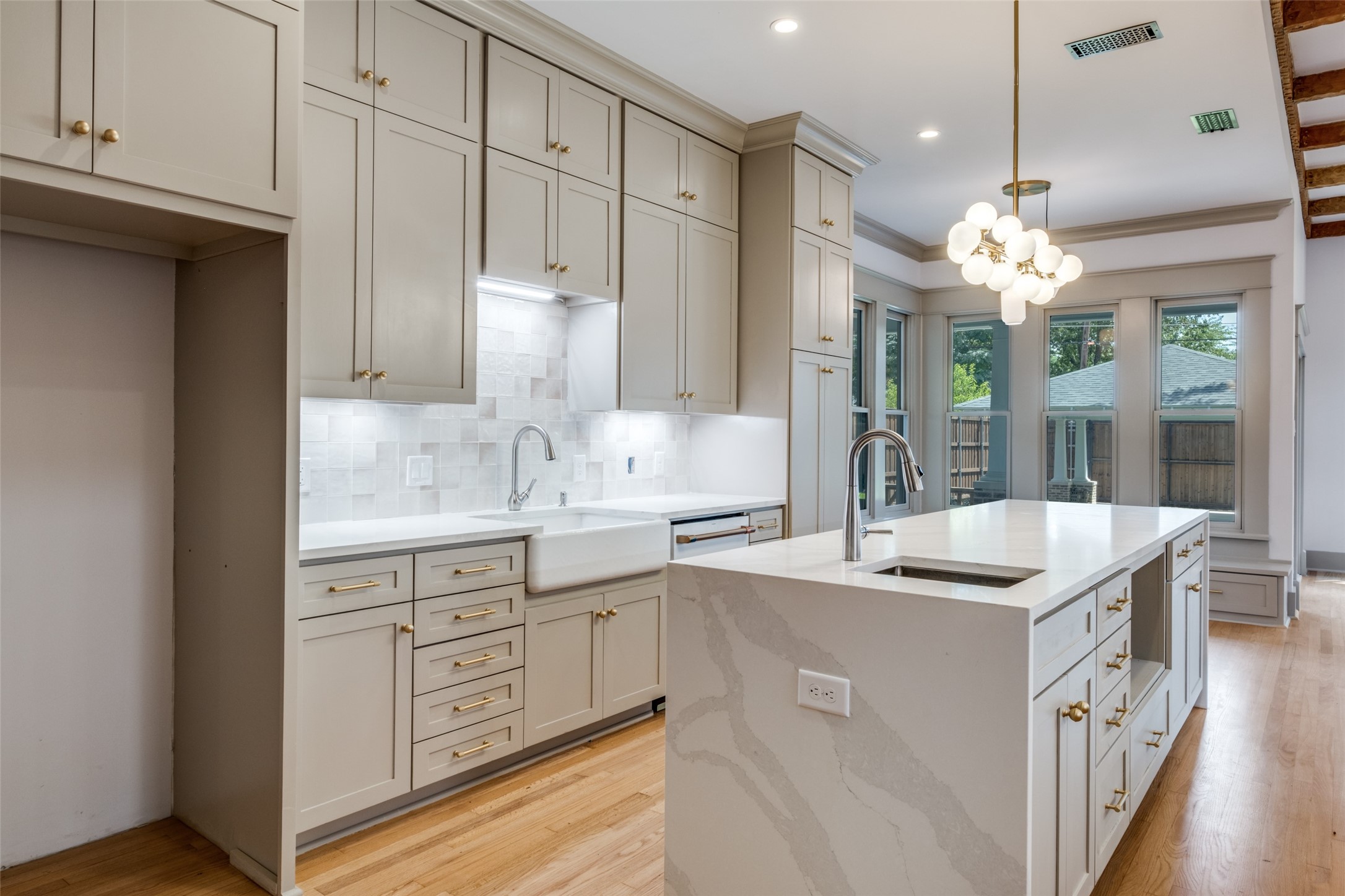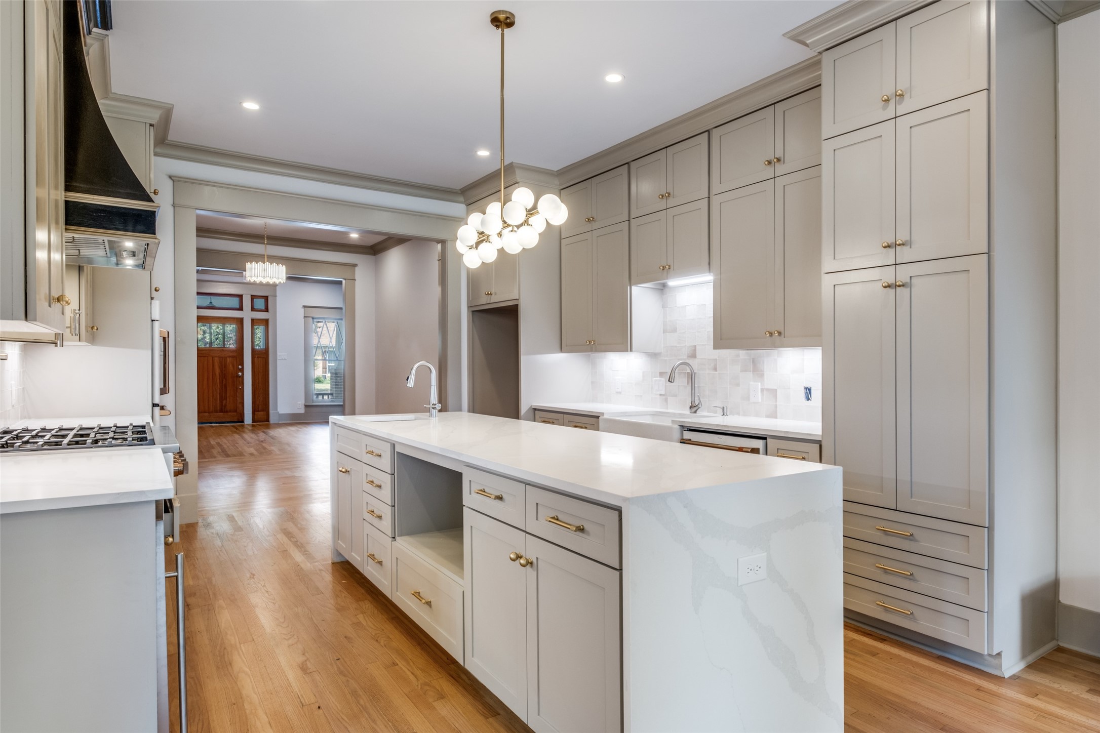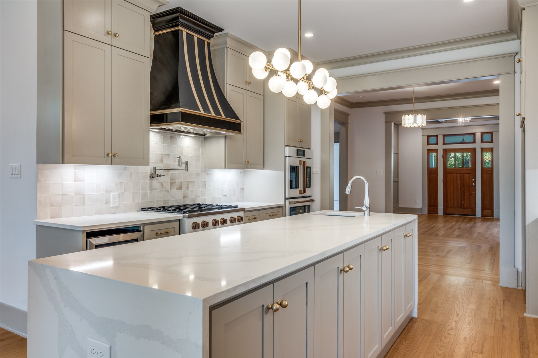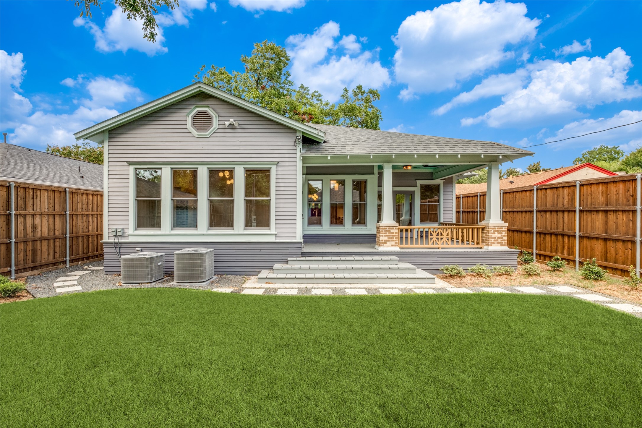 Crafted by renowned architect Rick Garza, founding partner of RPGA Design Group and a longtime Kings Highway resident, this 1914 Craftsman has been completely taken down to the studs and meticulously reimagined. Located in the heart of the Kings Highway Conservation District, this home blends architectural preservation with high-performance living in one of Oak Cliff's most beloved neighborhoods. Featuring three bedrooms and two bathrooms, every inch of this residence reflects a deep appreciation for design and craftsmanship. Inside, beautifully restored reclaimed oak floors flow throughout an open layout filled with natural light and character. The Level 5 smooth finish on all walls and ceilings offers a clean, refined backdrop for the home's thoughtful details. The chef's kitchen is a true centerpiece, equipped with GE Cafe matte white appliances, a six-burner gas range, quartz countertops, brushed brass fixtures, designer vent hood, pot filler, wine fridge, and custom cabinetry. The spacious primary suite offers a serene retreat with a frameless shower, soaking tub, custom marble, and a large walk-in closet. This home has been completely updated with all new electrical, plumbing including the main sewer line, dual zone energy efficient HVAC, blown insulation, energy efficient windows and doors, new roof, and ZIP sheathing under the siding. Additional features include a full size laundry room, new driveway and front walk, fully irrigated landscaping, a two car cabana-style carport with alley access, and an eight foot privacy fence enclosing the backyard. Every element was designed with intention by someone who has spent over three decades preserving and enhancing this neighborhood. This is more than a home. It's a generational statement. And it's ready for its next chapter.