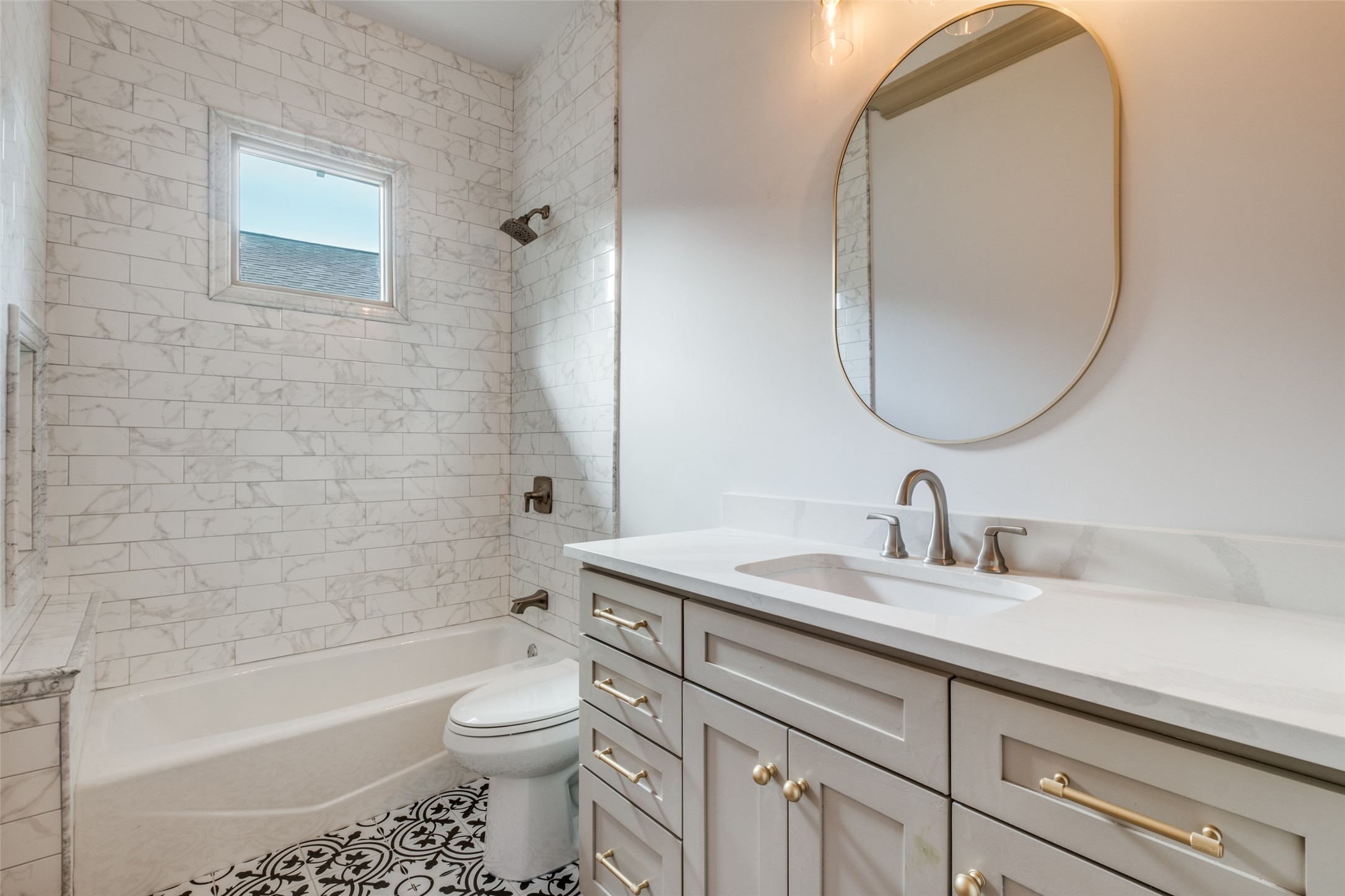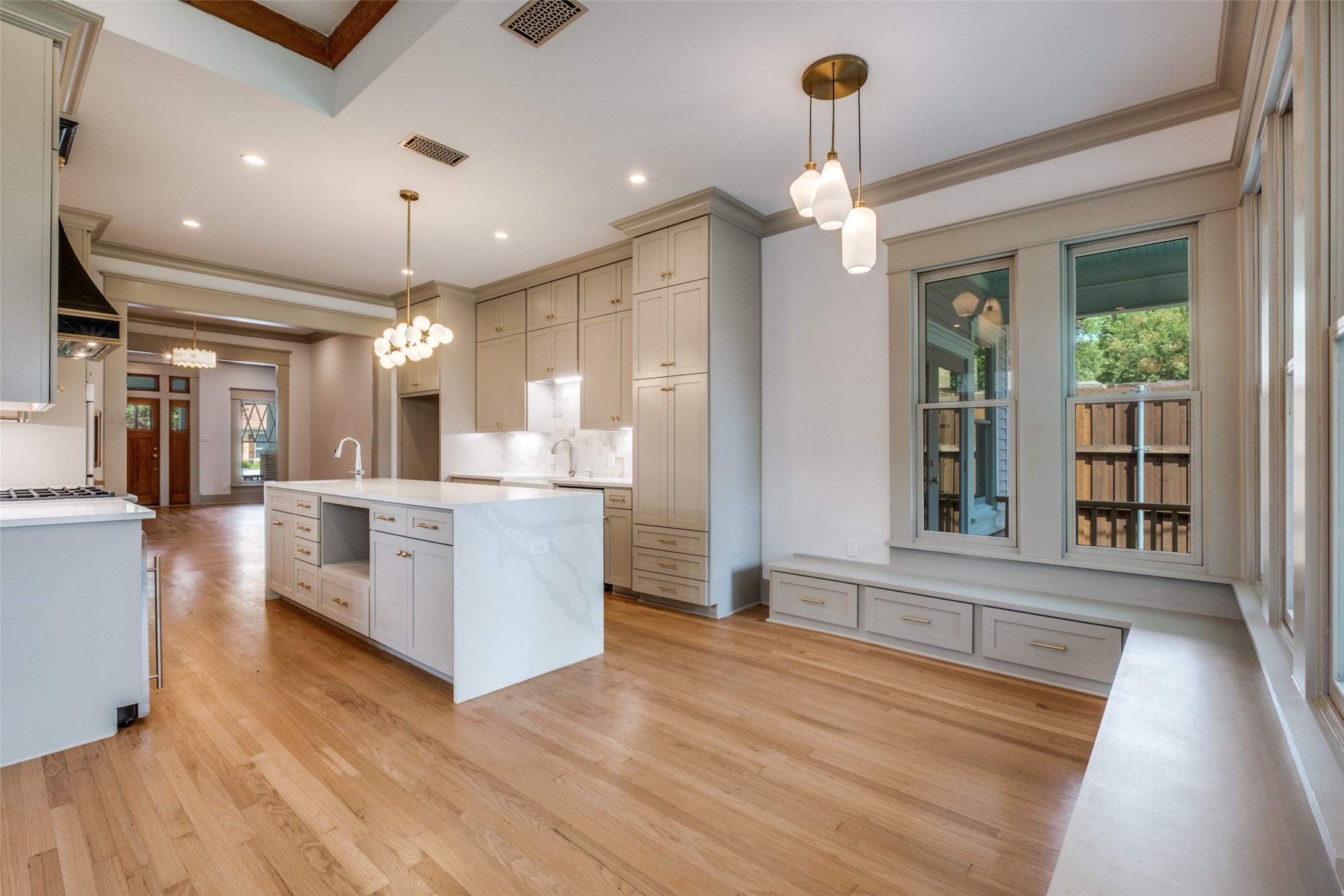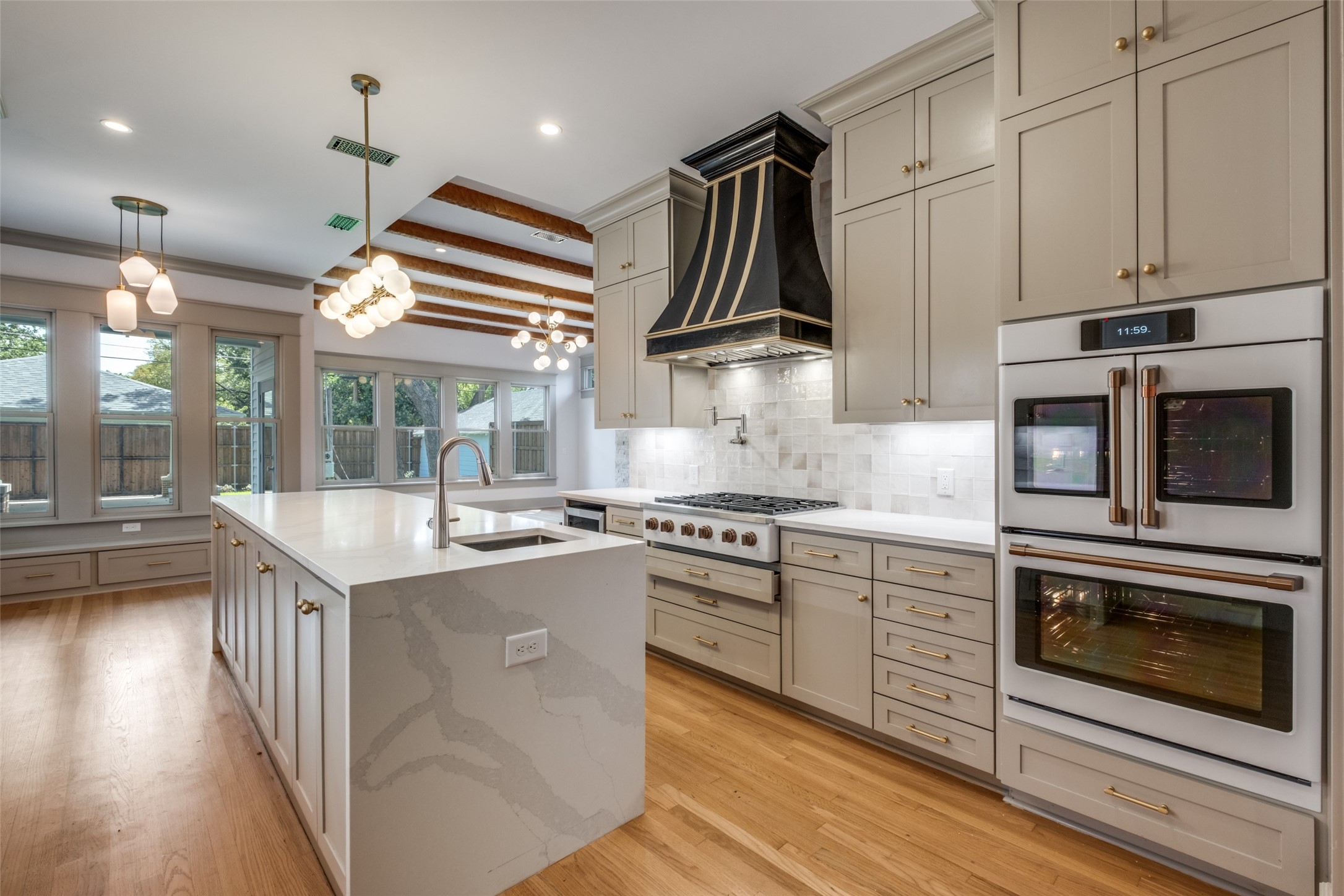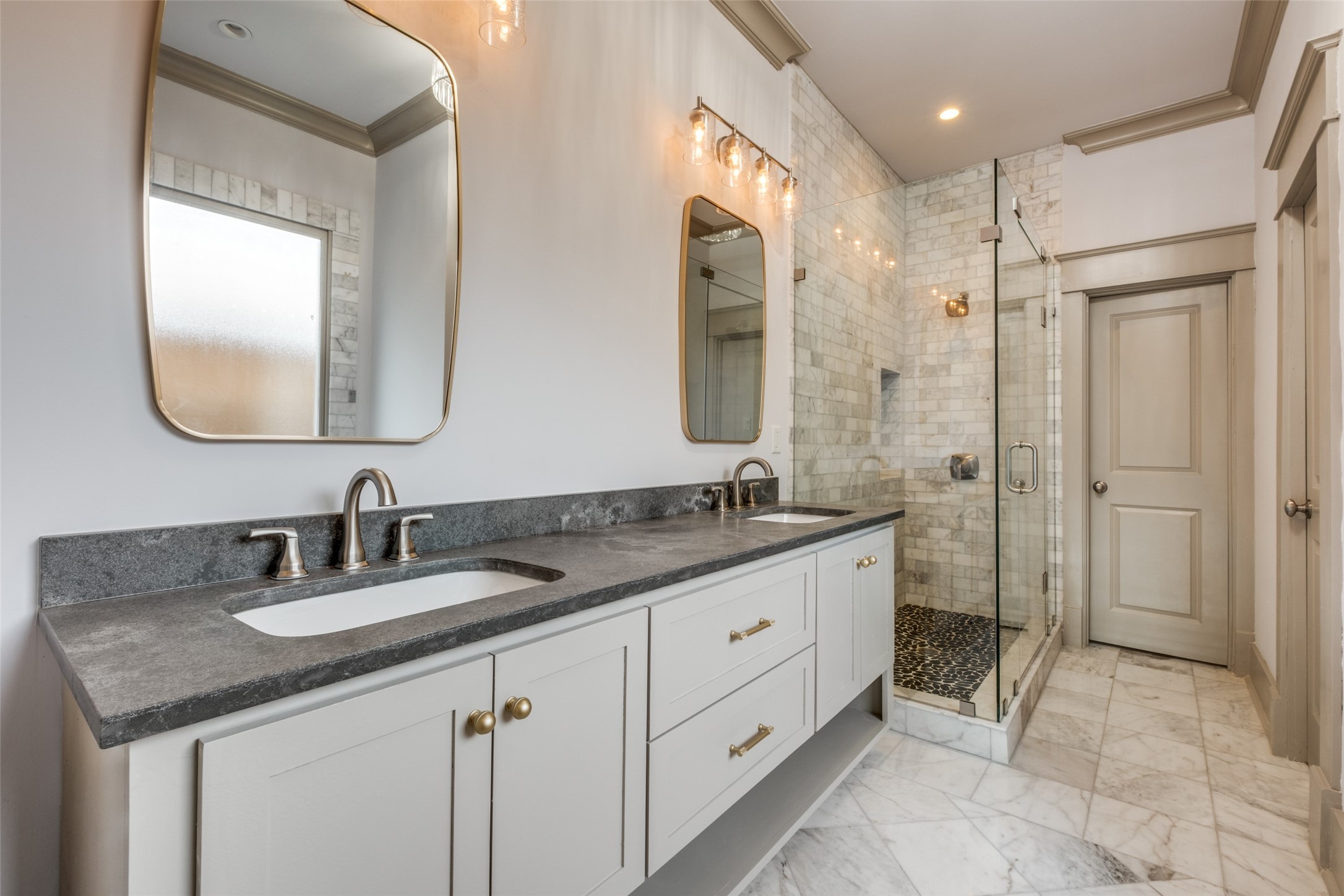 Crafted by renowned architect Rick Garza, founding partner of RPGA Design Group and a longtime Kings Highway resident, this 1914 Craftsman has been completely taken down to the studs and meticulously reimagined. Located in the heart of the Kings Highway Conservation District, this home blends architectural preservation with high-performance living in one of Oak Cliff's most beloved neighborhoods. Featuring three bedrooms and two bathrooms, every inch of this residence reflects a deep appreciation for design and craftsmanship. Inside, beautifully restored reclaimed oak floors flow throughout an open layout filled with natural light and character. The Level 5 smooth finish on all walls and ceilings offers a clean, refined backdrop for the home's thoughtful details. The chef's kitchen is a true centerpiece, equipped with GE Cafe matte white appliances, a six-burner gas range, quartz countertops, brushed brass fixtures, designer vent hood, pot filler, wine fridge, and custom cabinetry. The spacious primary suite offers a serene retreat with a frameless shower, soaking tub, custom marble, and a large walk-in closet. This home has been completely updated with all new electrical, plumbing including the main sewer line, dual zone energy efficient HVAC, blown insulation, energy efficient windows and doors, new roof, and ZIP sheathing under the siding. Additional features include a full size laundry room, new driveway and front walk, fully irrigated landscaping, a two car cabana-style carport with alley access, and an eight foot privacy fence enclosing the backyard. Every element was designed with intention by someone who has spent over three decades preserving and enhancing this neighborhood. This is more than a home. It's a generational statement. And it's ready for its next chapter.