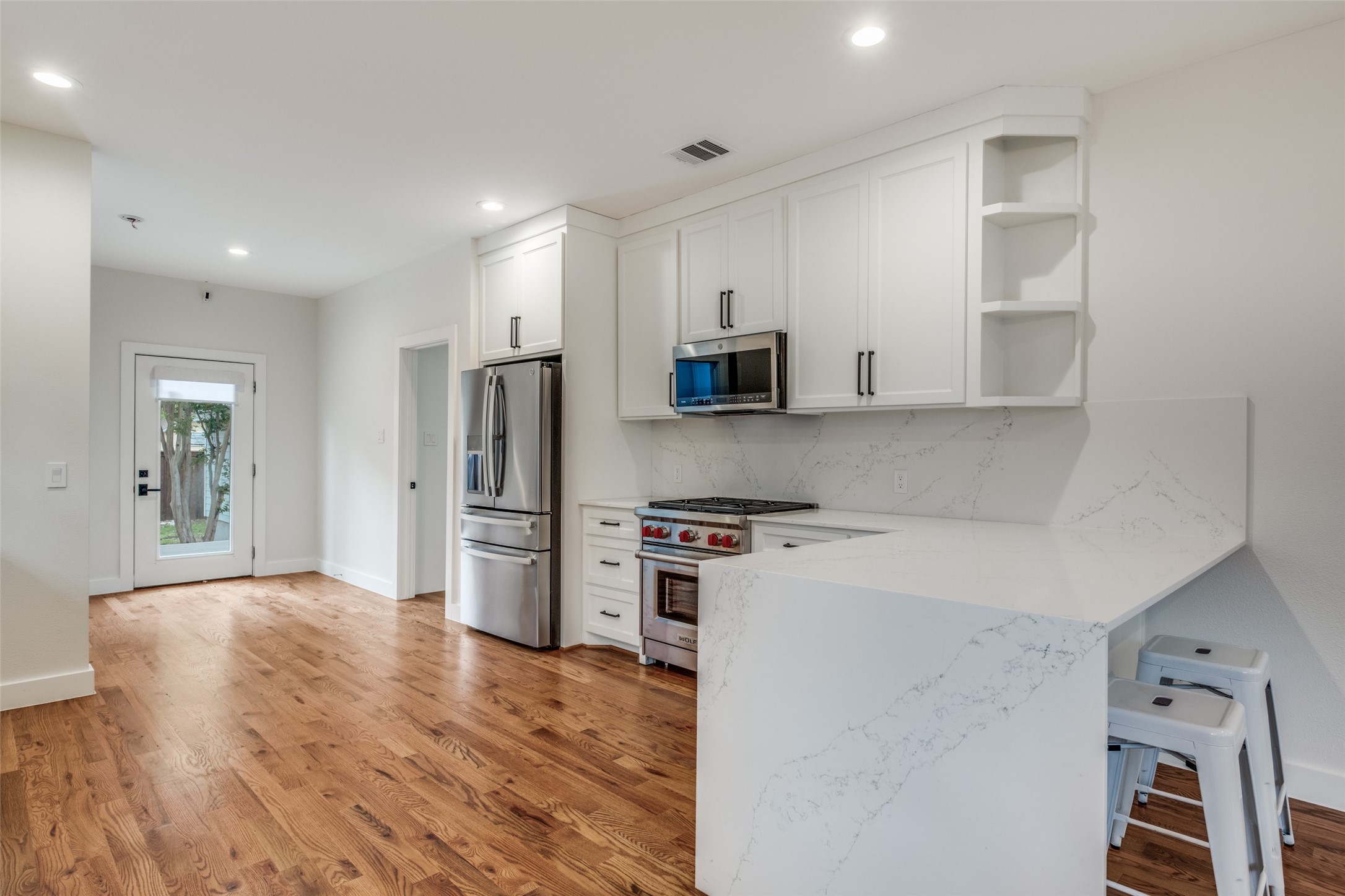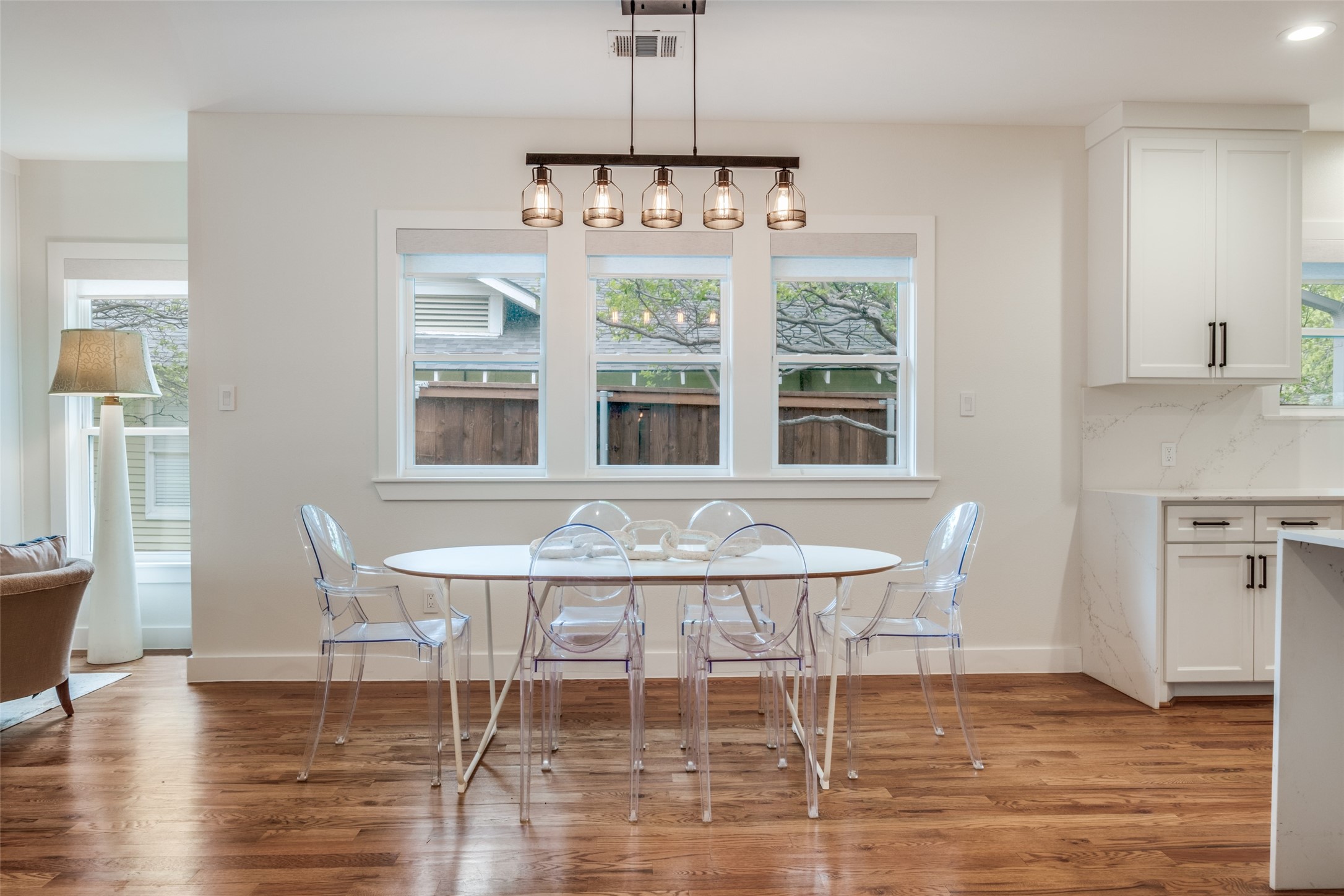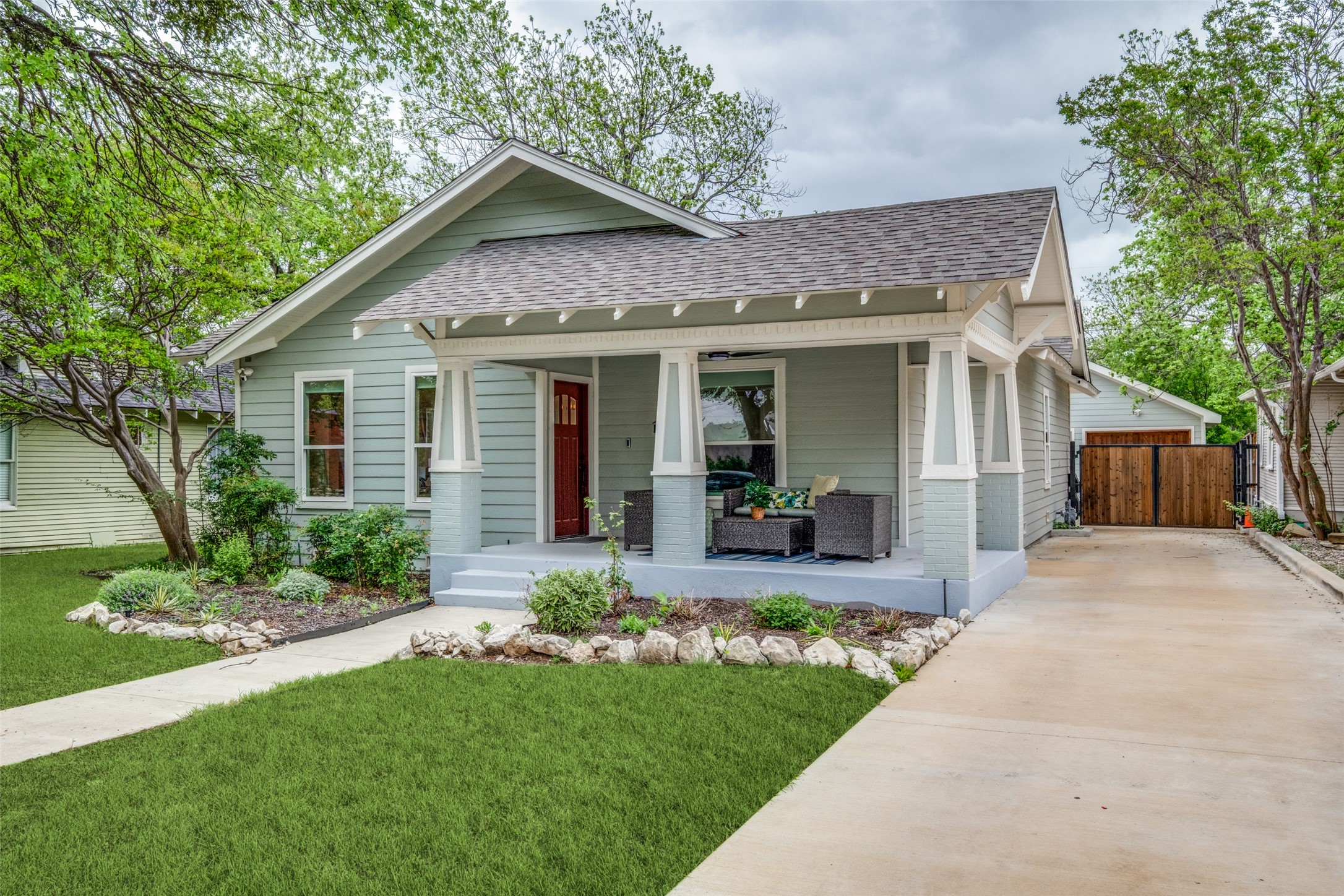 Set within the highly sought after Kings Highway Conservation District, 734 N. Montclair is a thoughtfully reimagined Craftsman blending timeless character with elevated, design forward living. This beautifully updated home showcases top tier finish outs, warm hardwood flooring, custom millwork, and tailored built ins that enhance both function and style. Natural light fills the interior, highlighting clean lines and a refined, cohesive aesthetic. Custom window treatments and designer touches throughout create a sophisticated yet comfortable environment. The kitchen serves as the heart of the home, featuring a Wolf range, granite countertops, and custom cabinetry, perfectly suited for both everyday living and entertaining. The layout has been expanded to offer generous living spaces while maintaining a seamless flow. Both bathrooms have been updated with a modern sensibility, and improvements behind the walls, including updated electrical, provide added peace of mind. Step outside to an expansive deck overlooking a spacious backyard, ideal for entertaining or relaxing. A detached two car garage adds convenience and flexibility. Ideally located near Stevens Park Golf Course, Twelve Hills Nature Preserve, and just minutes from Bishop Arts. Families will appreciate proximity to highly rated Rosemont Elementary, offering a dual language program and a recent $14.1 million renovation. Enjoy walkability to neighborhood parks and local amenities while being tucked into one of Oak Cliff's most established communities. This home qualifies for a $5,000 buyer credit through a preferred lender. A home where thoughtful design meets everyday living, creating a space that feels as good as it looks.