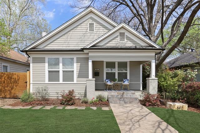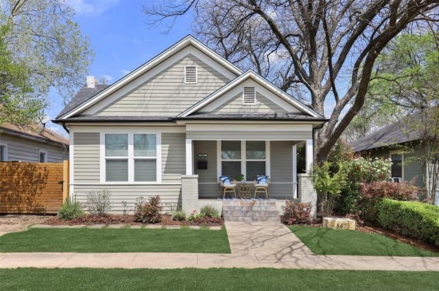 Immaculate and move-in-ready! Incredible location just 1 block from Kidd Springs Park, TYPO, and minutes from Bishop Arts District and desirable North Oak Cliff! Inviting slate-tiled covered front porch. Bright, airy, and open concept floor plan. Freshly painted throughout, gorgeous refinished hardwood floors, new patio poured in the backyard, and new landscaping. Kitchen features beautiful quartz countertops, custom cabinetry, and stainless steel appliances. Major systems updated in 2014 - roof, electrical, plumbing, windows, and more. Huge grassy backyard with stepping stones to the awesome tree-shaded party deck - perfect for entertaining! Master en-suite with walk in shower and double closets! See this one today!